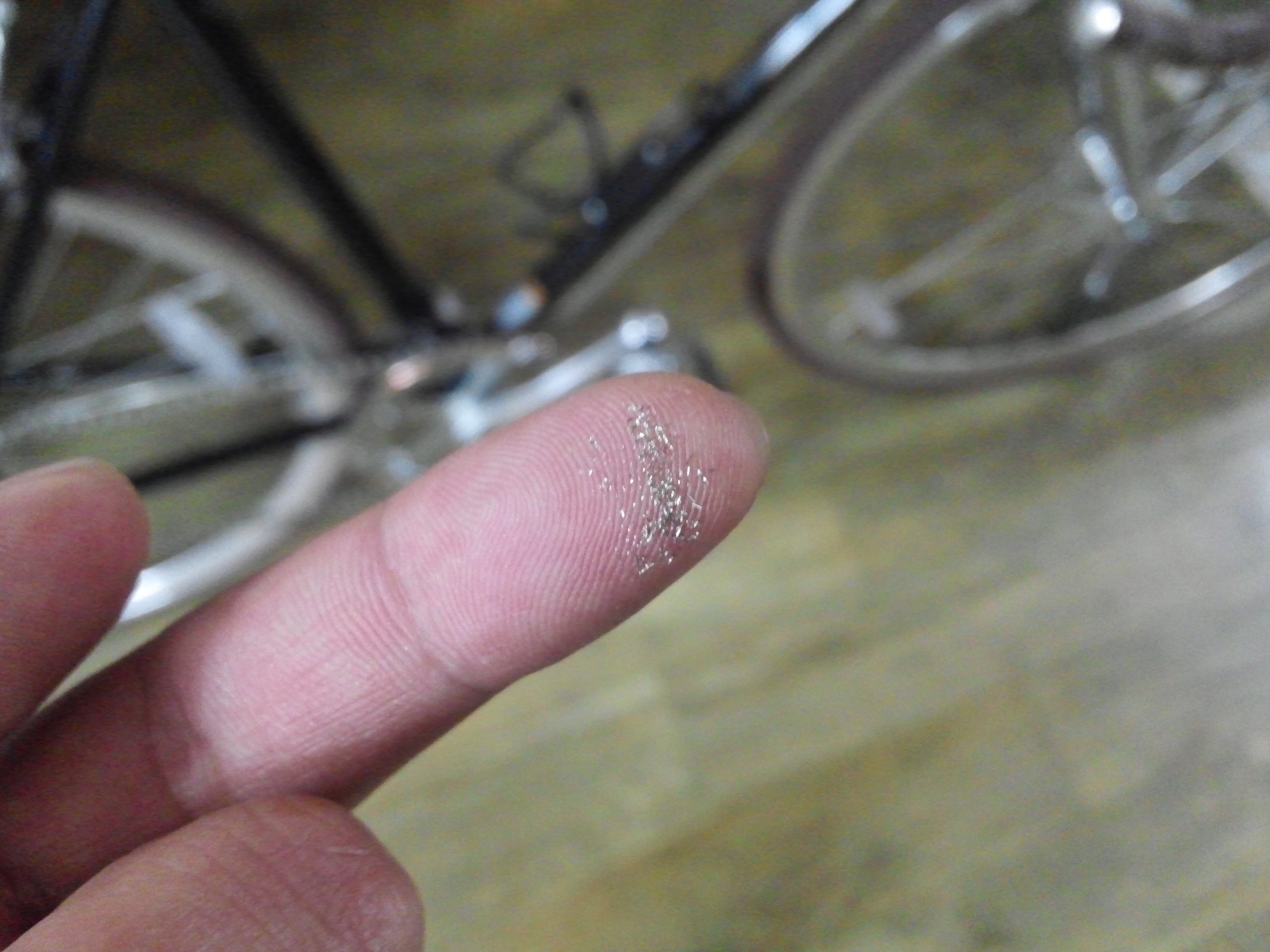 개시도 못한 자전거 크랭크 도색이 손으로 문지르기만 했는데도 허물벗듯이 훌훌 벗겨지네요..
