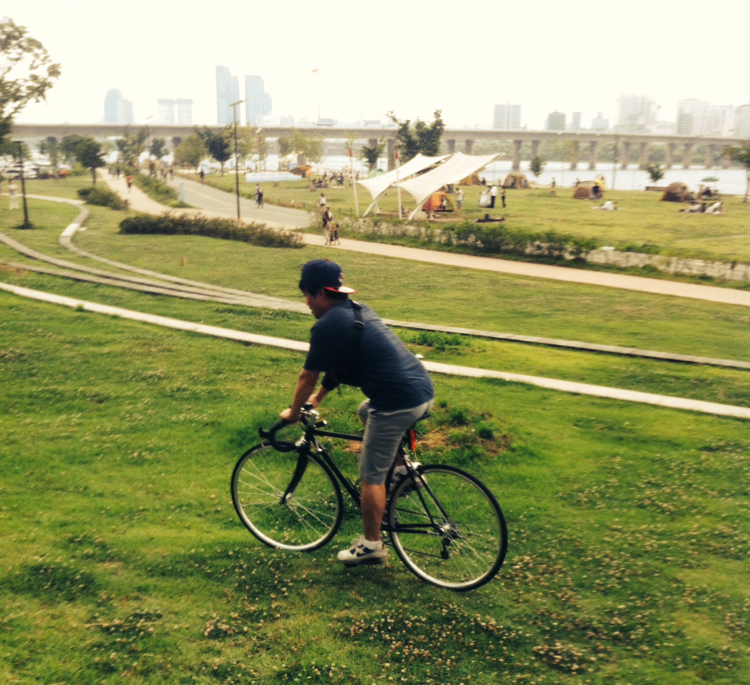잔디밭에서 자전거 타믄 안돼지만,,사진을 위해,,ㅋㅋㅋ