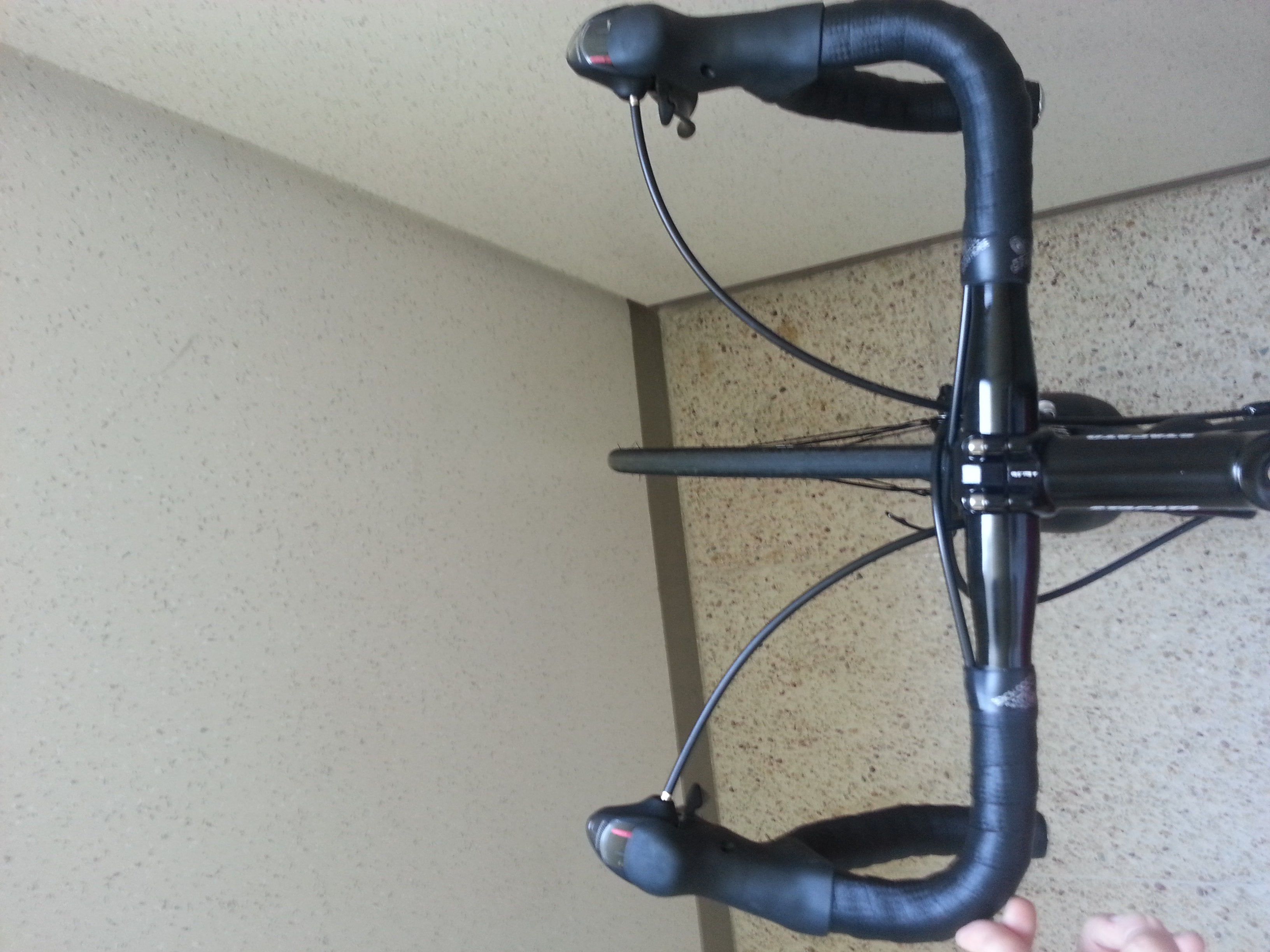 큰 문제는 아니며 나사를 풀고 자리를 다시 잡아주면 되지만 고객님께서 공구가 없으실듯 하니 가까운 샵에서 교정을 보시는것이 가장 정확하게 문제를 해결할 수 있을것 같습니다.